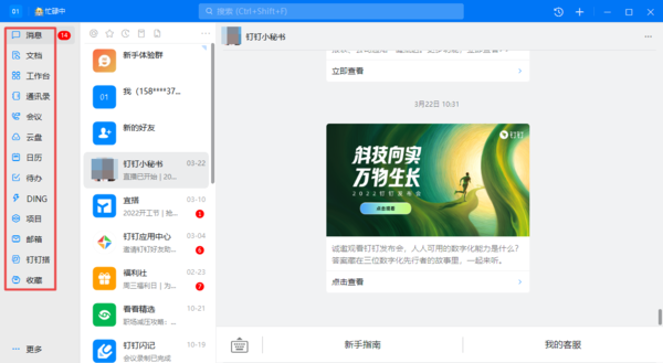 最后,我们就可以让PC电脑版钉钉左侧显示图标的具体功能了,这样使用起来是不是更方便,找功能更快速呀。