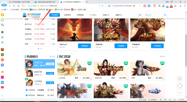 2、或者在2345加速浏览器地址栏下方找到【游戏中心】并点击,也可以进入到2345游戏页面。?