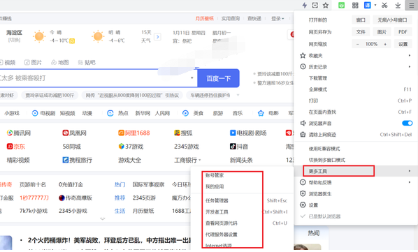 2345浏览器的工具栏在哪设置