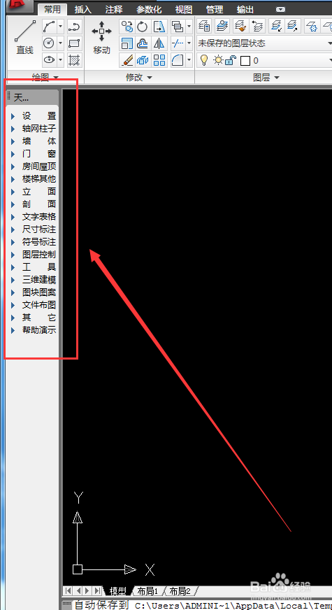 完成上一个步骤以后,就开启了天正建筑软件的工具栏。