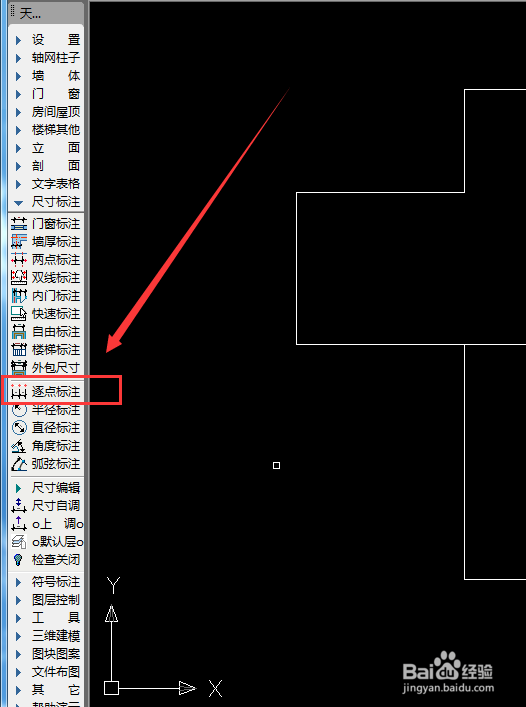 打开“尺寸标注”以后你就会发现里面有各种各样的标注功能。小编就拿土木工程专业用的最多的一种标注方式---逐点标注,给大家分享一下怎么标注。