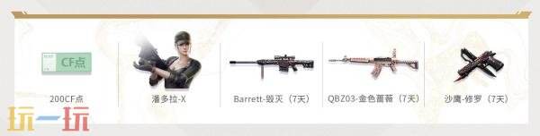 其他道具奖励:Barrett-毁灭(7天)、QBZ03-金色蔷薇(7天)、沙鹰-修罗(7天)