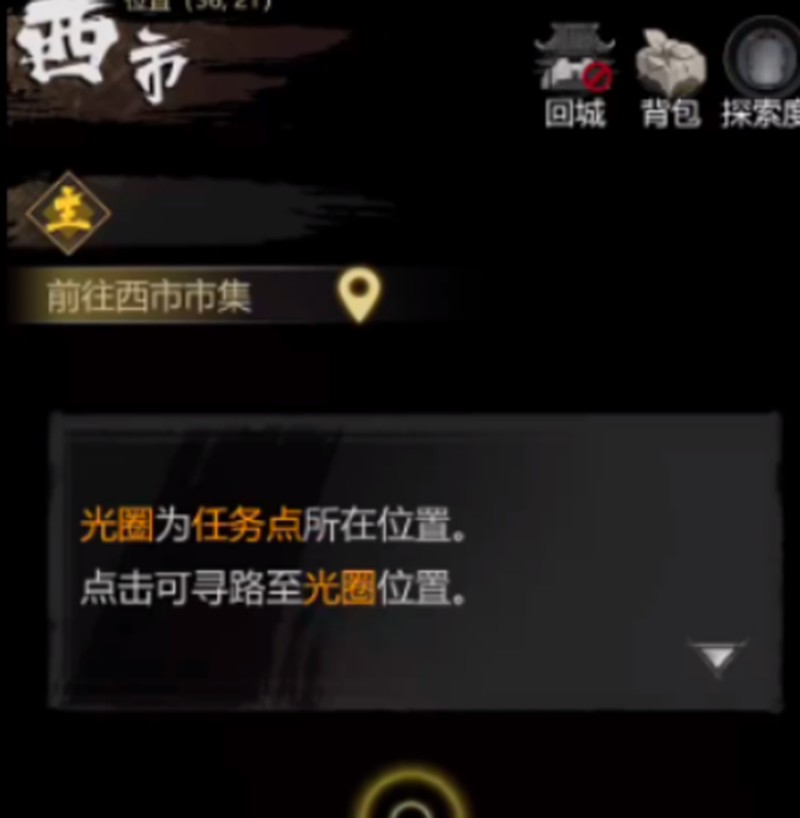 第二个据点位于(33,25),玩家需要按照提示逐步推进。接下来要查封(22,28)的药铺,然后调查(28,32)的武器铺和(16,35)的布庄。西市的其他地点也藏着重要线索,比如(7,34)的染房可能有神秘物品,进入(3,24)的乐坊前需要先易容。与(21,14)的兰桂坊老板交谈能获取情报,在(5,13)的老宅可以找到训豹指南,使用通义或威慑技能能轻松应对这里的挑战。最后来到(5,4)的雅苑,需要掌握轻功才能跨过湖面。