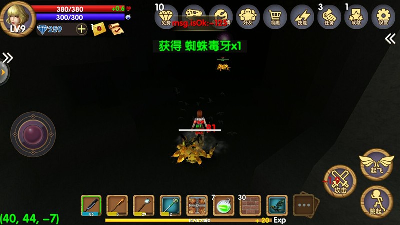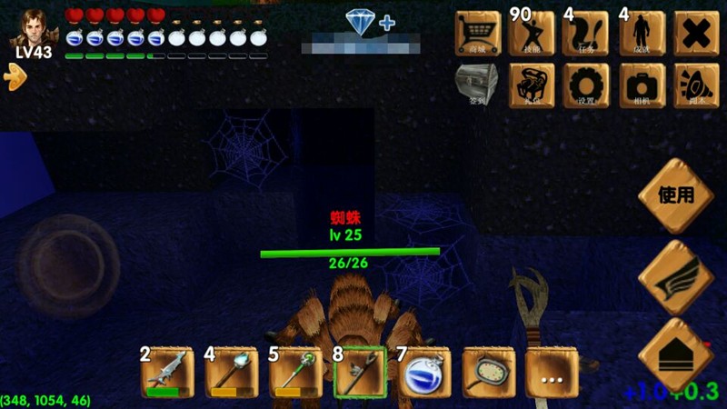游戏中的蜘蛛主要分布在地下洞穴中,洞穴越大出现的蜘蛛等级越高。不过我们不需要刻意寻找高级蜘蛛,出生点附近的小型矿洞就会定期刷新1级蜘蛛,使用普通武器就能轻松击败获取材料。