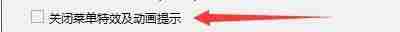 找到“关闭菜单特效及动画提示”选项,选中前面的复选框。
