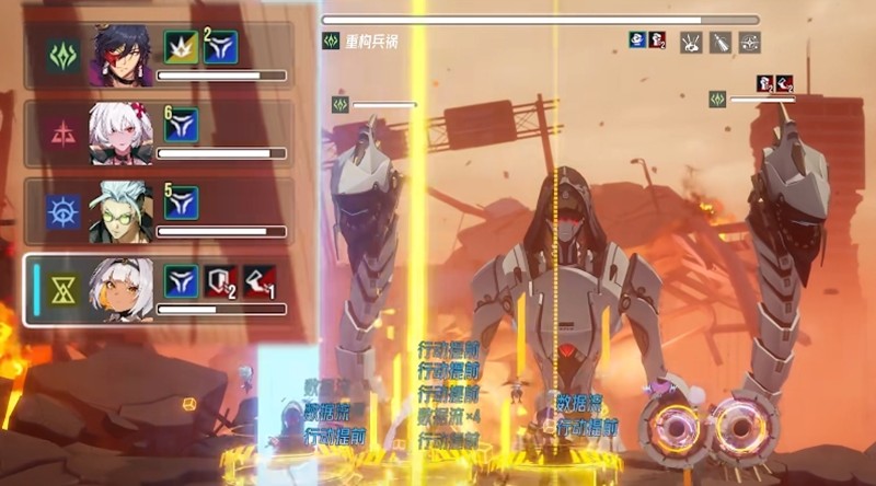 她的另一个关键技能"时序跃升+全面覆盖"是提速技能,可以八次为行动最慢的队友提升15%行动速度。配合数据流buff的同时,还能为自己叠加五层减伤效果,每层可抵消10%伤害。