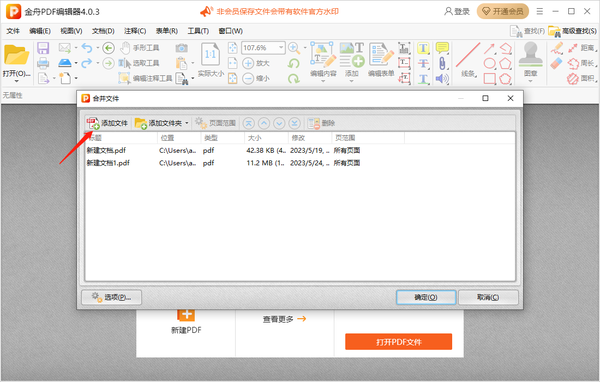 2、在【合并文件】界面,点击【添加文件】,将需要合并的多个PDF文档添加进来。?
