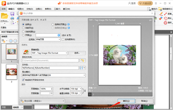 2、然后在设置详情中选择好需要导出的页面以及格式等,最后点击右下角的【确定】就可以导出为图像格式了。?