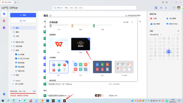 第一步,还是按照上述的方法,进入到WPS的外观设置界面中。然后在外观设置界面中,找到【桌面图标】选项,点击要更换的桌面图标选项。