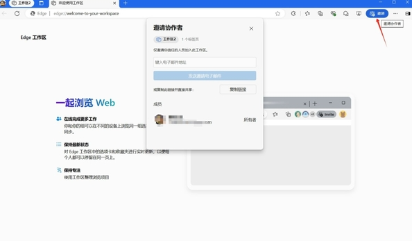 3.创建成功后,我们会来到一个新的窗口,点击右上角的“邀请”按钮,通过电子邮件或直接分享链接的方式邀请同事或合作伙伴加入您的工作区。这使得团队成员即使身处不同地点,也能轻松加入到同一个工作环境中。?