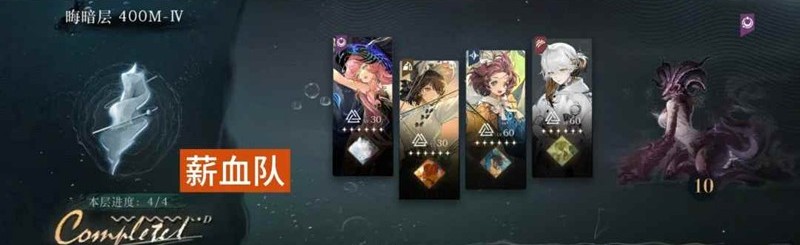 400-4:诺谛卡和塞梅为核心,全员给诺谛卡叠薪血,3的倍数回合诺谛卡开大;纸信圈儿开大后能给诺谛卡带来很大收益;背后灵选灵系的术阵频次,在boss要放大招的回合可直接封掉大招