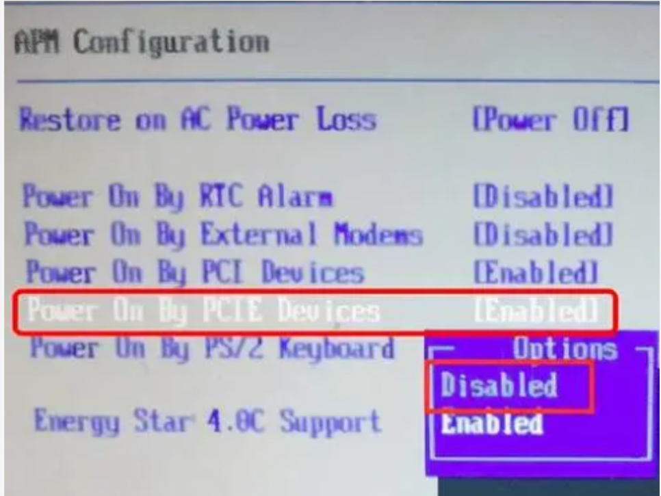 在 Power management 设置窗口中,将“Wake up on LAN”项设置为“Enabled ”。