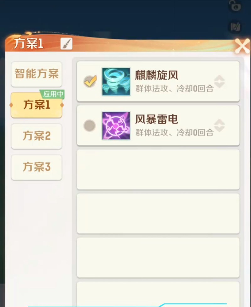 羁绊技能天雷共鸣需要与特定灵兽组队触发,可以提升风麒麟20%技能效果,并附加3秒感电状态。这个技能大大增强了风麒麟的输出能力。
