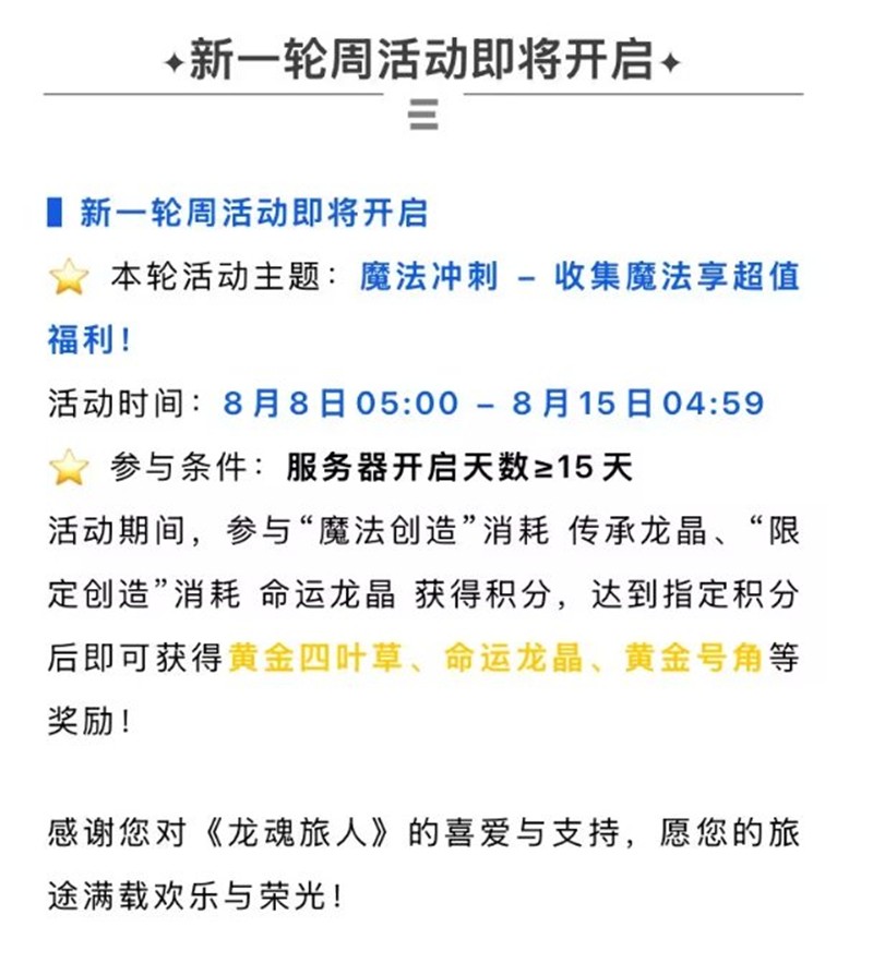 活动说明:在限定创造中使用【命运龙晶】召唤,龙语魔法,获得传说魔法概率翻倍,并有40%概率获得指定UP魔法。