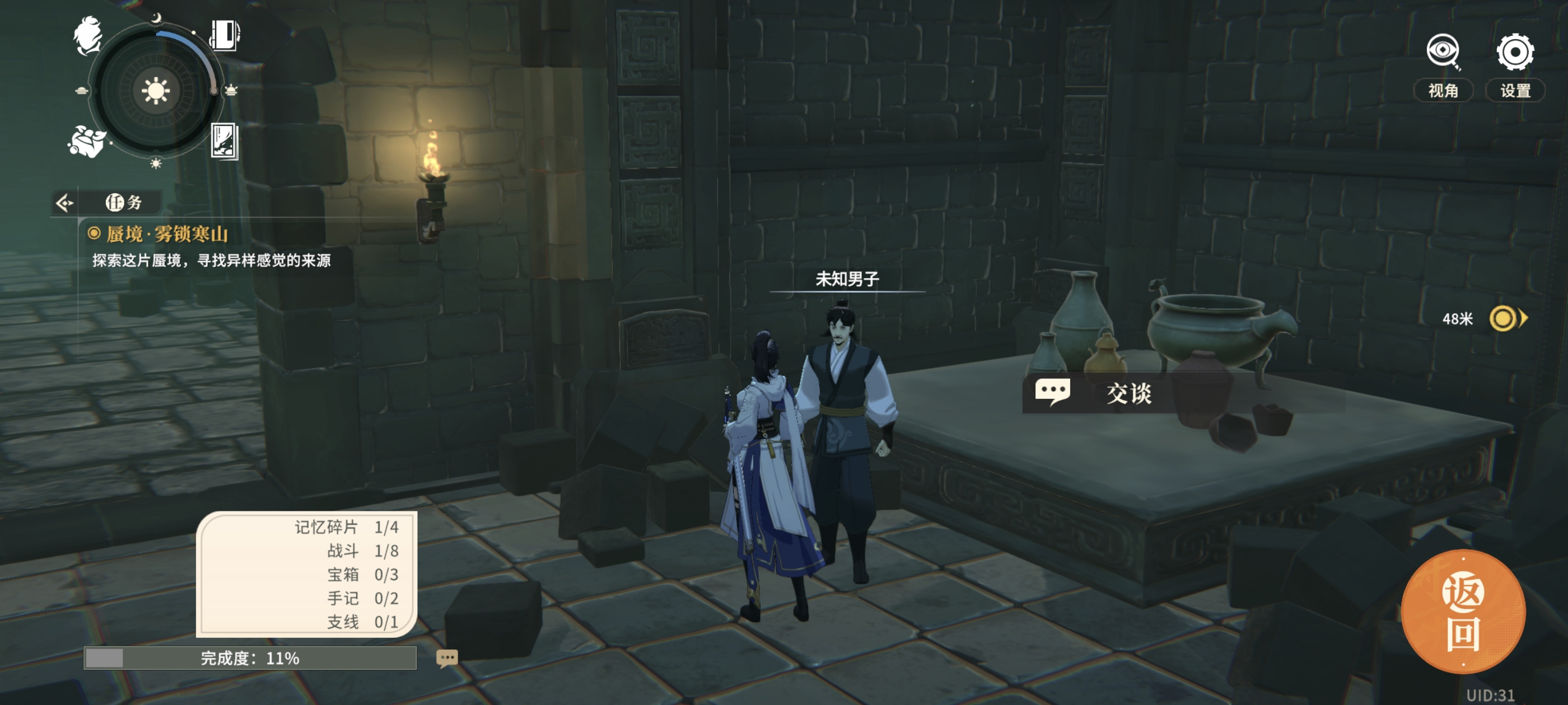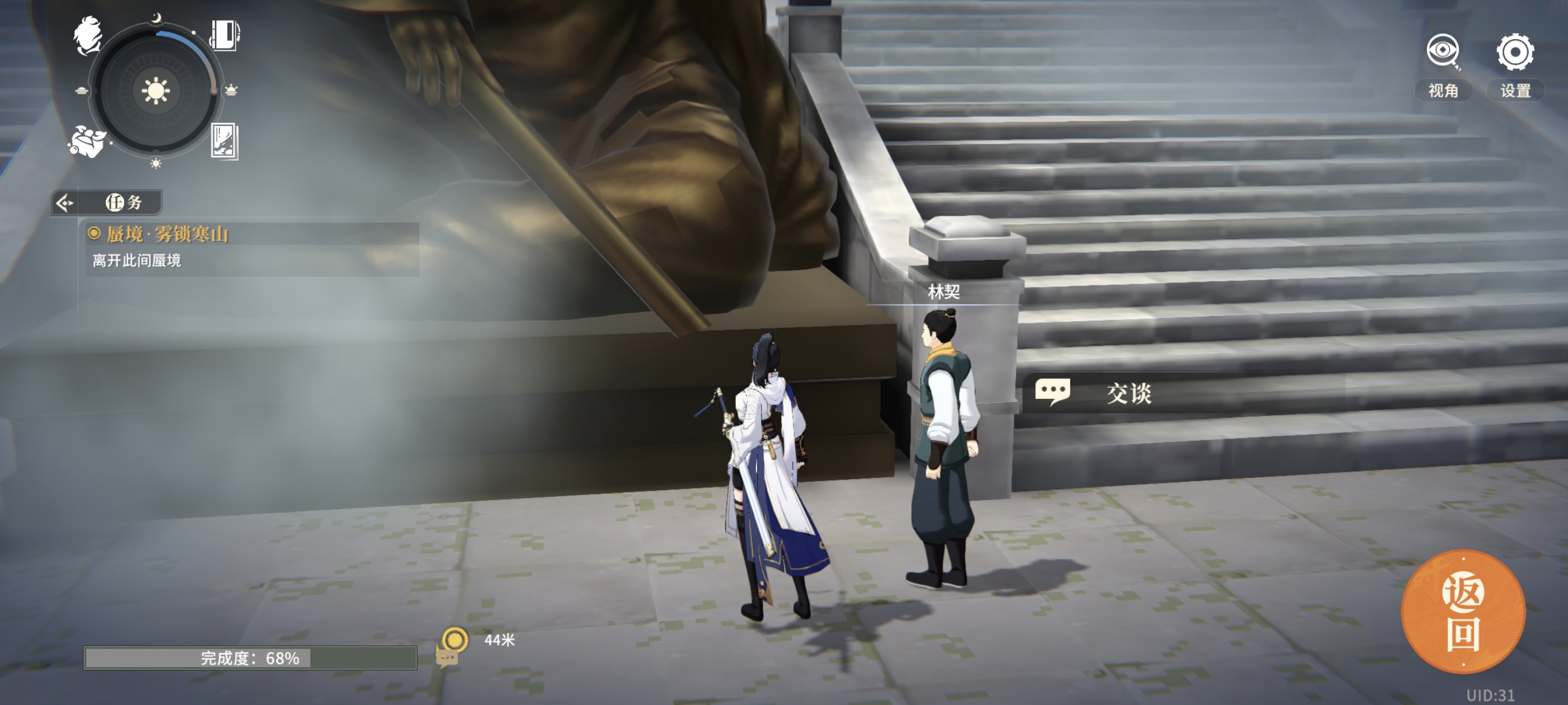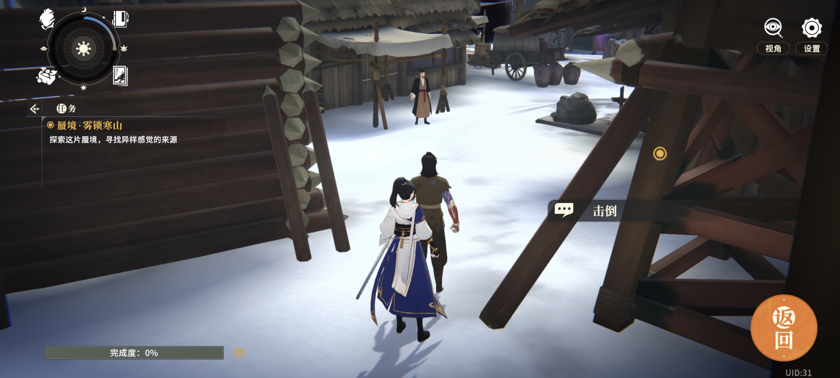 谜题——绕后击倒3个小怪(击杀了也不影响做谜题,退了蜃境重新进入小怪会恢复,击倒了也要退了重打小怪完成战斗)
