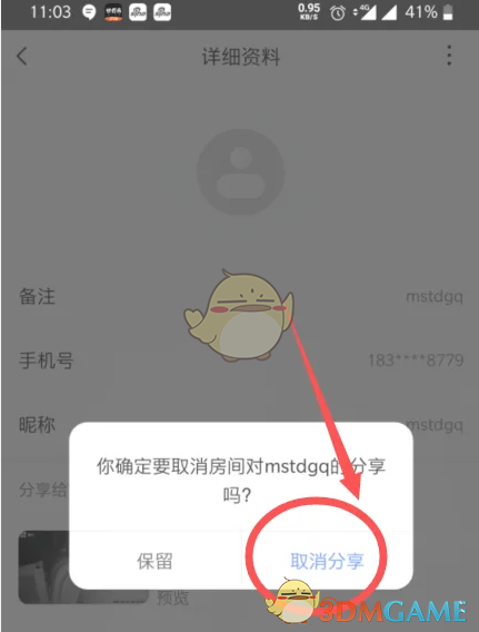 5、点击“取消分享”,则该好友即会失去对该设备的相关权限。