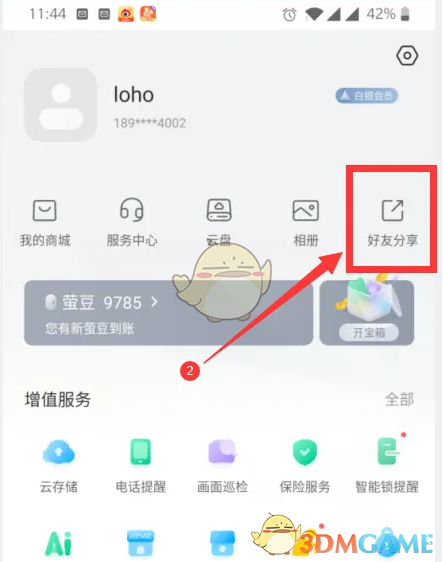 1、登录萤石云视频手机APP,在“我的”页签,点击“好友分享”;