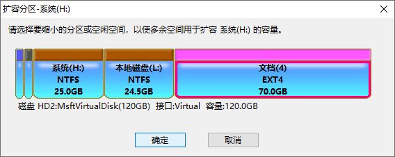 2、选择一个空闲空间比较多的分区,以便从这个分区转移空闲空间到需要扩容的分区中。选择分区,然后点击“确定”按钮。