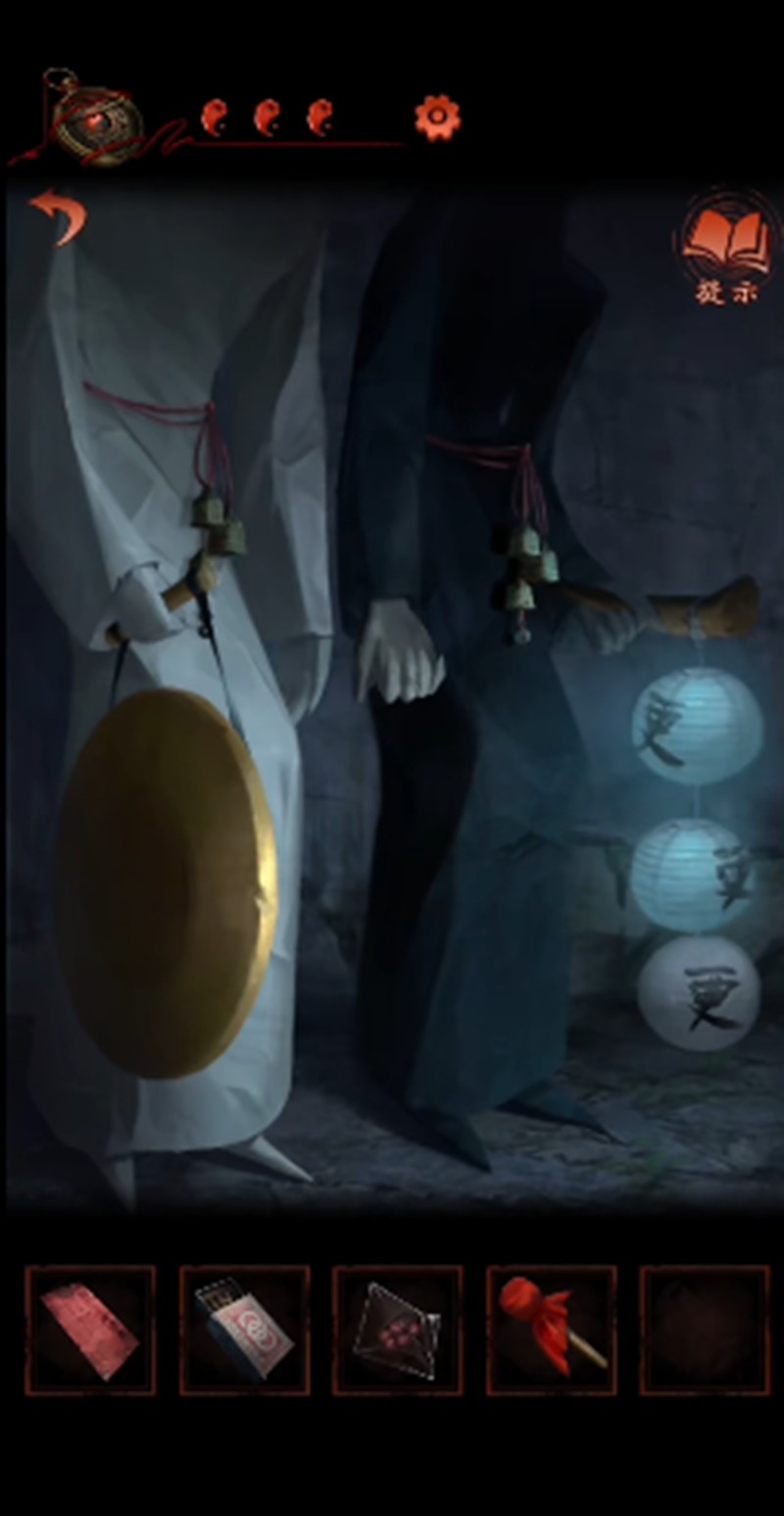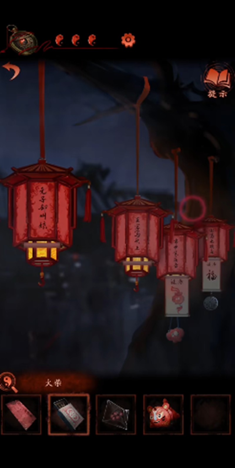 四个灯笼是本章的核心谜题。第一个灯笼需要挂上新娘木偶,在黑白无常处敲四下锣后,用红绳换取木偶。