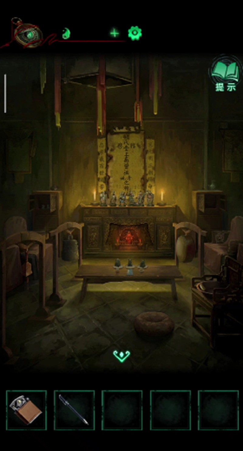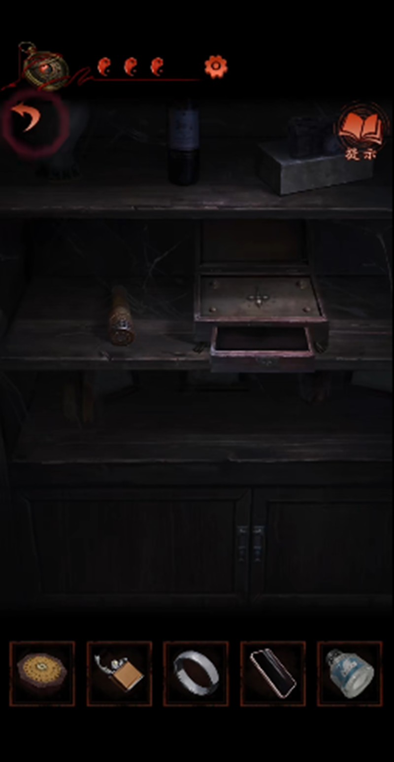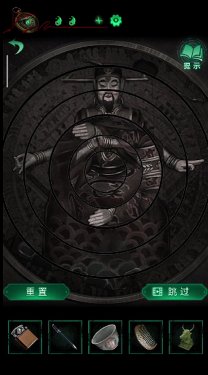 记住转盘文字后,男主角视角打开大门,左右两侧文字分别是"乾咒坤"和"神凡鬼"。七仙女画的颜色要对应改变神兽石头色彩,获得"玉印"道具。最后用印泥给牌匾印上"鬼"字,给纸人穿上嫁衣后点燃。