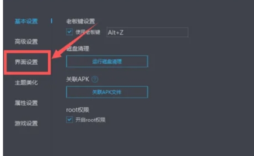 在设置中心的窗口中,找到并点击左侧栏中的“界面设置”选项。有些版本的MuMu模拟器可能会将分辨率设置放在“显示设置”中,因此如果找不到“界面设置”,也可以尝试查找“显示设置”。