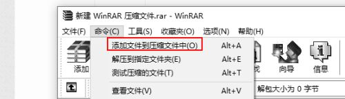 使用快捷键alt+A,即可添加文件到压缩文件中