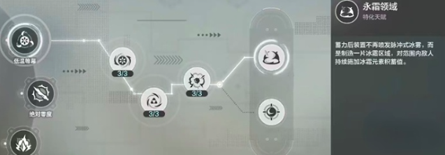而充能近战绝对零度,则是在玩家进行冰刺投掷后,可直接将射出的子弹包裹冰霜,对命中的boss造成更强的单体冰冻伤害,他所拥有的特化天赋是零度之境,而这一天赋可以使boss直接掉血,并在停战过程当中,也会持续性伤害,相当于多增加了一层伤害buff。