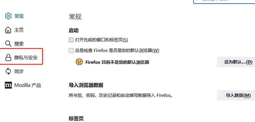 3.用户进入到设置窗口中,用户将左侧的选项卡切换到隐私与安全选项卡上来解决问题