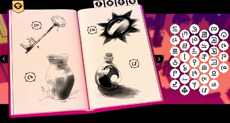 第二章的谜题难度有所提升,包含两组关键内容:"隐藏、孩童"和"寻找、孩童"。之后玩家会遇到"推倒、石柱、道路"的图标组合,以及"旋转、雕像"的字符谜题。完成这些后还能获得新词组"方向"。在仓库潜行环节,需要破解"搬运、箱子、遮挡、视线"的字符组合。天文台的诗歌方向谜题则需要按照"西、北、东、南、西"的顺序来解。