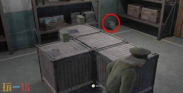 跟随守卫通过大门或装备军官制服与面具进入房间,可在一层中间的第二个房间的两个架子之间拾取。