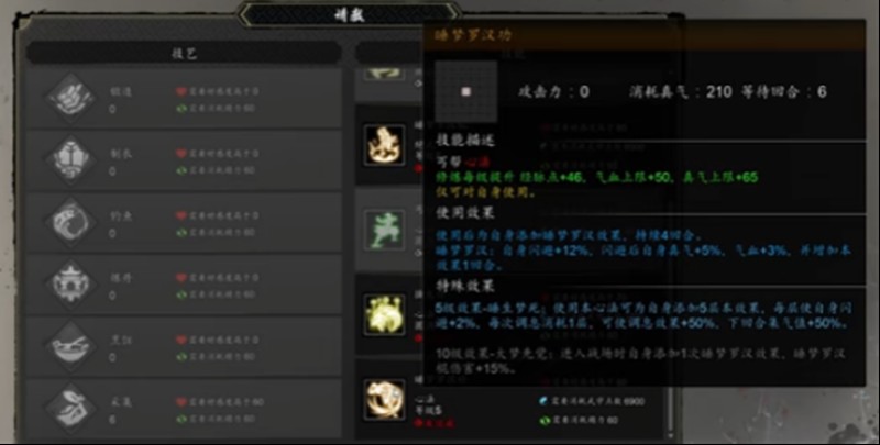 当睡梦罗汉功修炼到10级时,效果会更加强大。战斗开始时自动获得睡梦罗汉状态,使用睡梦罗汉棍法时伤害提升15%。这个心法非常适合搭配闪避流玩法,能显著提升角色的生存能力和输出效率。