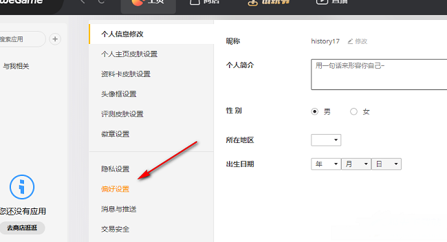 3、在打开的窗口界面中,点击左侧栏中的"偏好设置"。