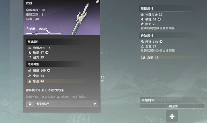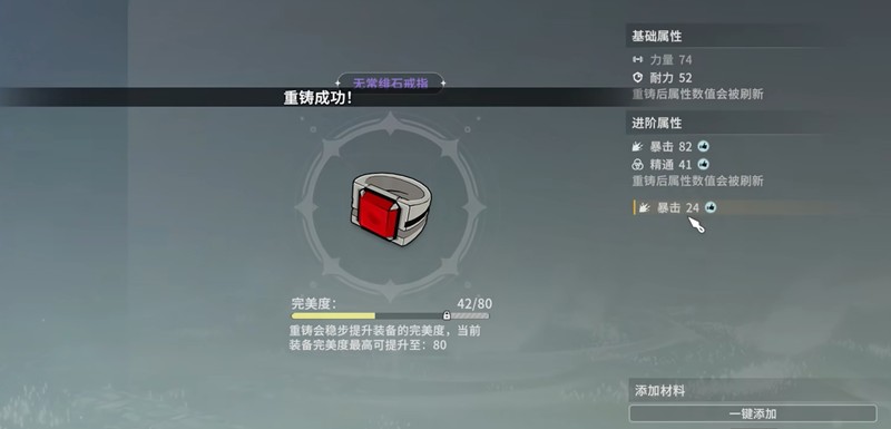 装备完美度达到上限后,基础属性和词条数值就会固定下来。金色装备的完美度上限更高,建议优先重铸金装。紫色装备可以只做首次免费重铸,如果刷出好的词条就保留,否则直接分解。当金装的完美度接近上限且刷出优秀词条时,建议停止重铸以免词条被刷掉。