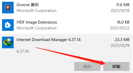 3、然后在其中找到"internet download manager",最后直接点击下方中的"卸载"按钮就可以了。