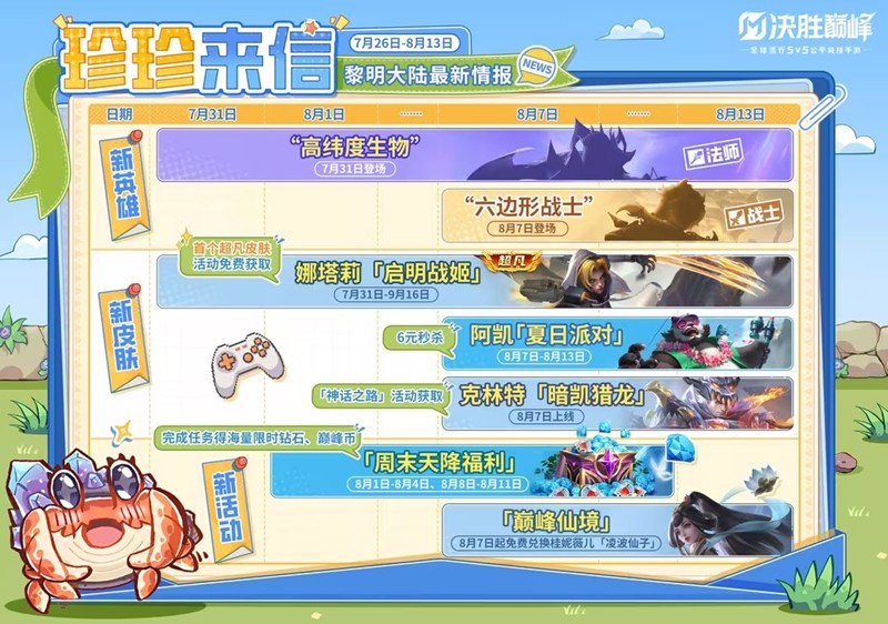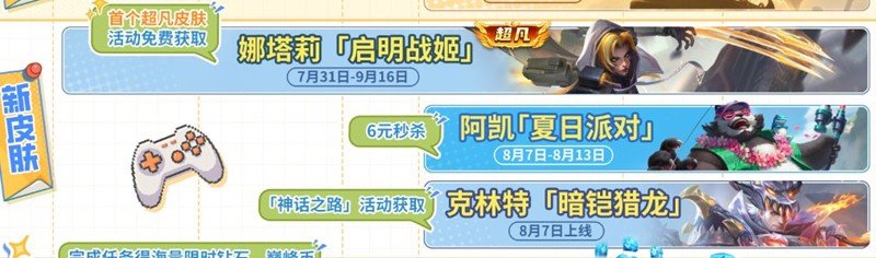 -首款【超凡品质】皮肤娜塔莉「启明战姬」7月31日登场!活动期间,完成每日任务约14天可获得~(视个人进度会有差异)。