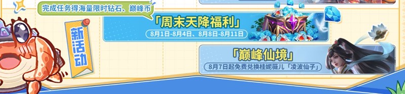 -【巅峰仙境】活动8月7日正式开启!使用100个「巅峰币」即可免费兑换桂妮薇儿「凌波仙子」。