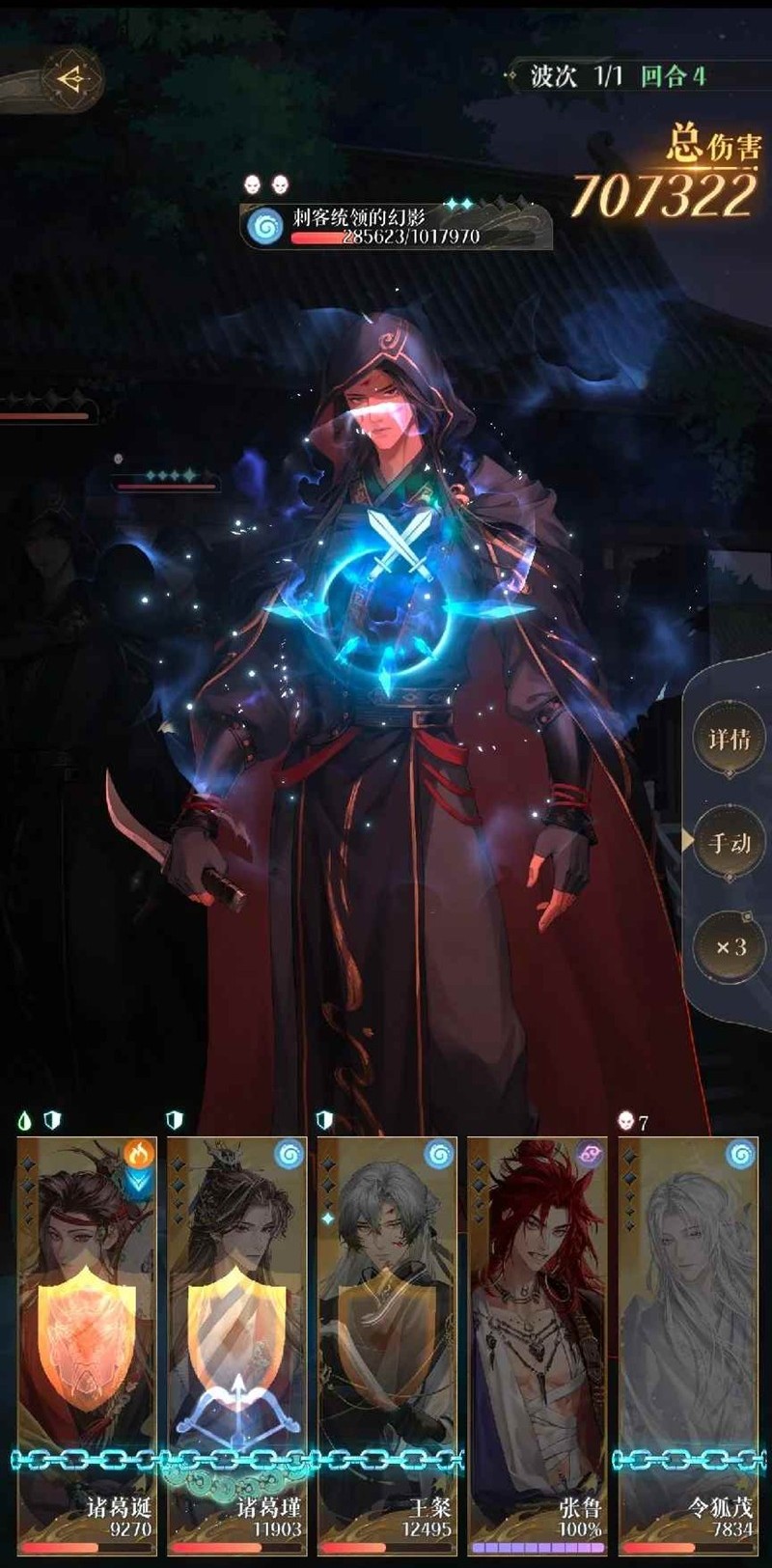 瑾普攻小兵1和小兵2,目的是降血量,让真身控制在小兵3。如果你蛋很能抗,可以第三回合或者第四回合稍微稍微普攻一下小兵3,叠个狐火。