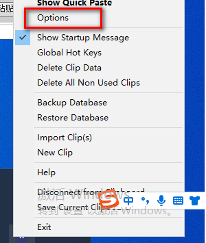 1、启动软件,右击右下角任务栏中的软件图标,接着选择选项列表中的"options"。