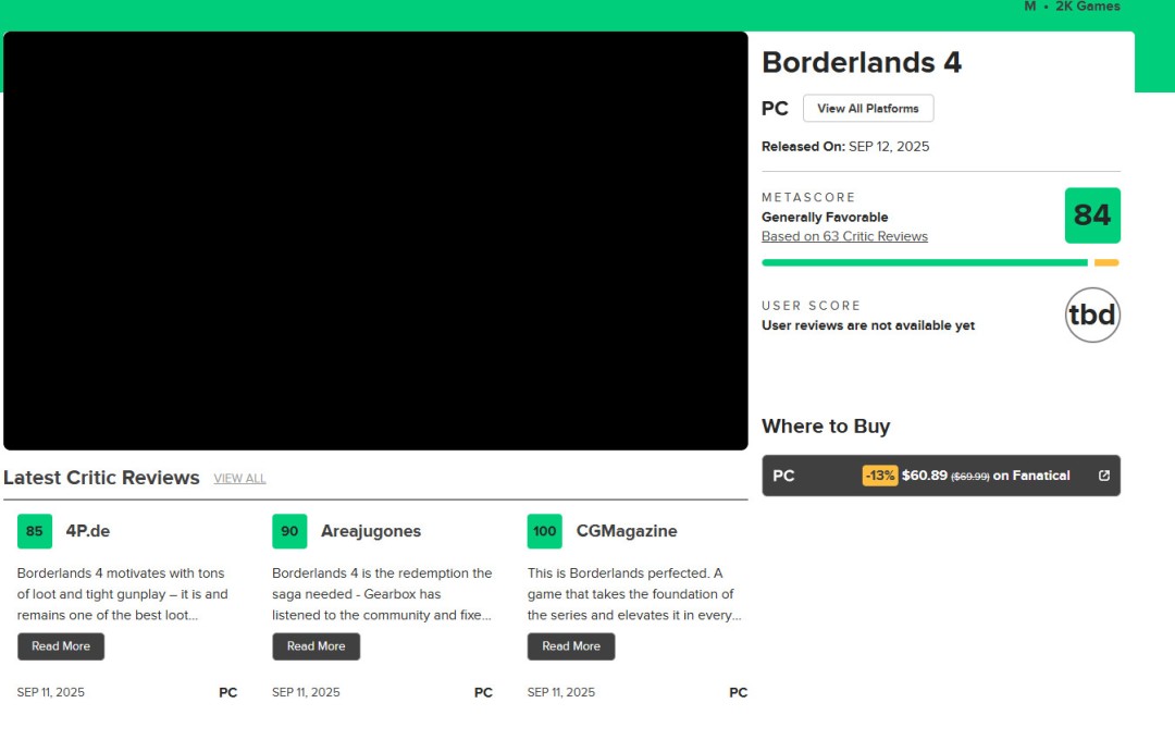 “《无主之地4》感觉就像是《无主之地2》的续作。它拥有出色的枪战体验,枪械种类繁多且有趣,任务数量多得离谱,而且玩起来不会让你感到尴尬或出戏。