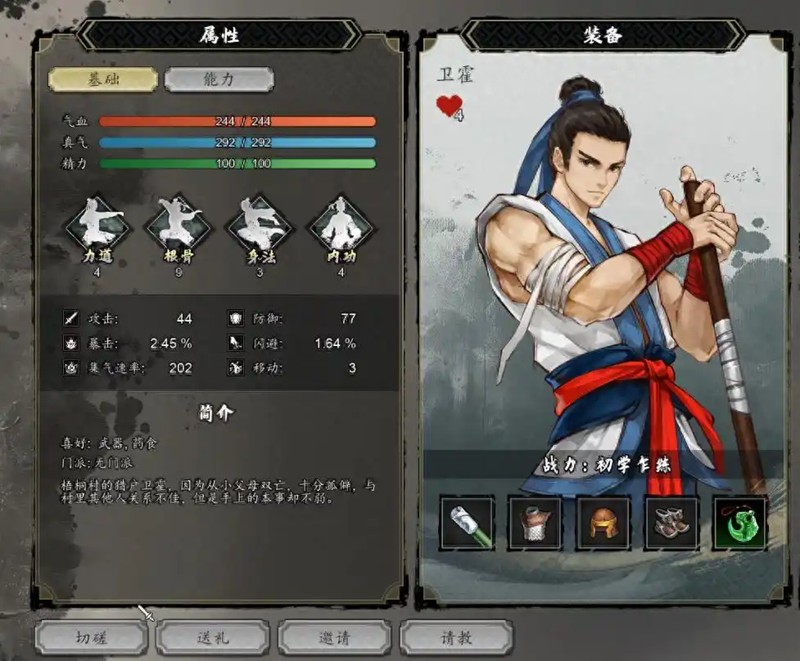 卫霍是枪棍系队友,玩家需要前往梧桐村,通过给指定NPC送礼将好感度提升至60点后即可邀请入队。