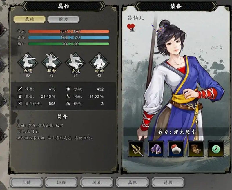 吕仙儿是必须收集的队友之一,在姑苏城最右侧可以触发比武招亲剧情,完成剧情后就能邀请她加入队伍。