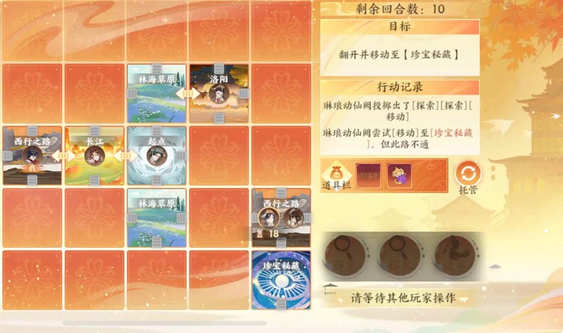 组队:6个人分为红蓝两队,队伍赢了才是赢了,个人单独探宝成功也不一定赢(在同一格时能看到对方颜色)