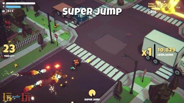 在混乱中奔跑、跳跃、冲刺,躲避危险和敌人,运送包裹。使用古怪的强化道具进行反击,并选择各种额外技能来提高你的生存几率。这就像疯狂出租车遇上喷气式电台!