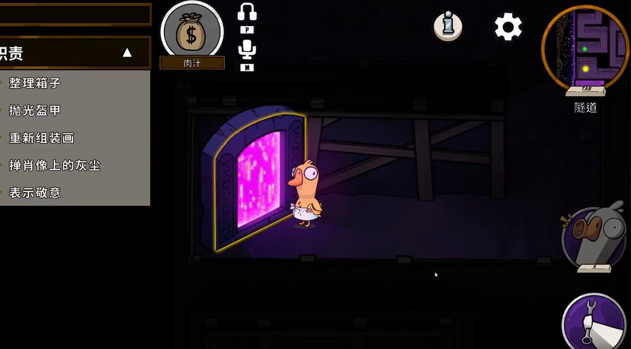 任务执行是肉汁积累赏金的关键,需优先选择低风险、高效率的任务类型。推荐优先完成电气室接线、仪表校准等短耗时任务,此类任务通常位于地图中心区域,便于快速抱团支援。避免单独前往通风管道密集的区域(如下水道、实验室),这些地点是鸭子伏击的高频刀位。任务过程中需注意每完成一个任务,鸭子视角会显示肉汁头顶的钱袋标记,此时需立即向附近好人玩家靠拢,防止被针对性追击。