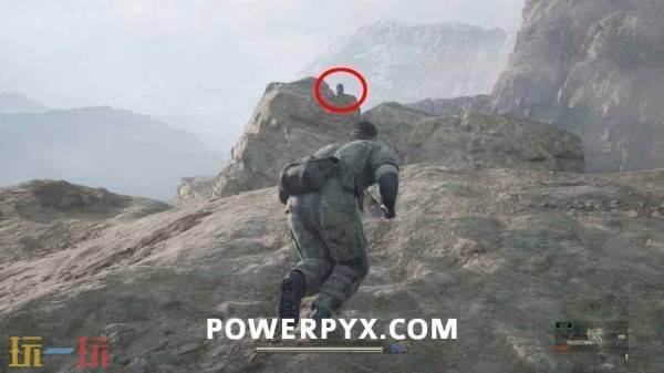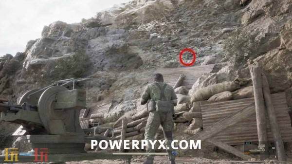 位于此区域顶端第二个高射炮后方,就在斜坡金属板的上方,鸭子全身有白色迷彩,与岩石融为一体了,很难看出来。
