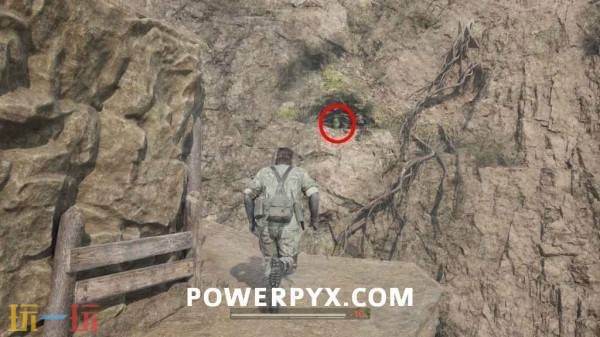 跟随主线爬上斜坡穿过此区域,到达第二段斜坡顶端,在正前方岩壁与绿植枝条的位置可以找到这只鸭子。