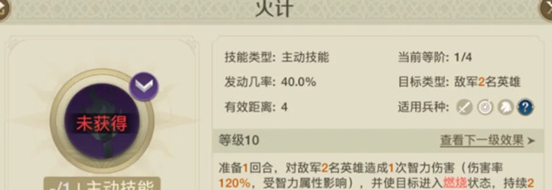 明智光秀的"擒王之策"专门针对敌方重要角色,对两名目标造成160%的智力伤害。这个技能在集火敌方核心输出时效果显著,配合其他控制技能使用能快速解决战斗。"火计"则是明智光秀的招牌技能,造成伤害的同时附加灼烧状态2回合,若目标已处于灼烧状态则效果翻倍,40%的触发概率在实战中相当可靠。