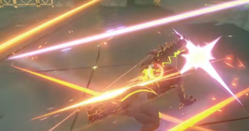 当队友被击飞时,爱丽丝可以快速切入战场提供支援。这个技能包含斩击和踢击两种攻击方式,能有效帮助队友脱离险境,展现了她作为团队成员的支援价值。