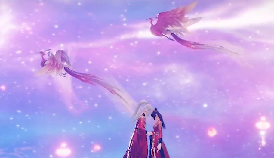接下来,玩家们需要前往河阳城的月老处登记结婚。在这里,你们可以选择不同的婚礼形式。简单婚礼不需要花费太多,选择简约婚书就可以完成仪式,而如果你们想要一次更有仪式感的婚礼,可以选择豪华婚书,这样的婚礼不仅会在全服广播,还能获得珍贵的双人飞行坐骑“比翼鸟”,这可是你们爱情的象征,外观也非常炫酷。