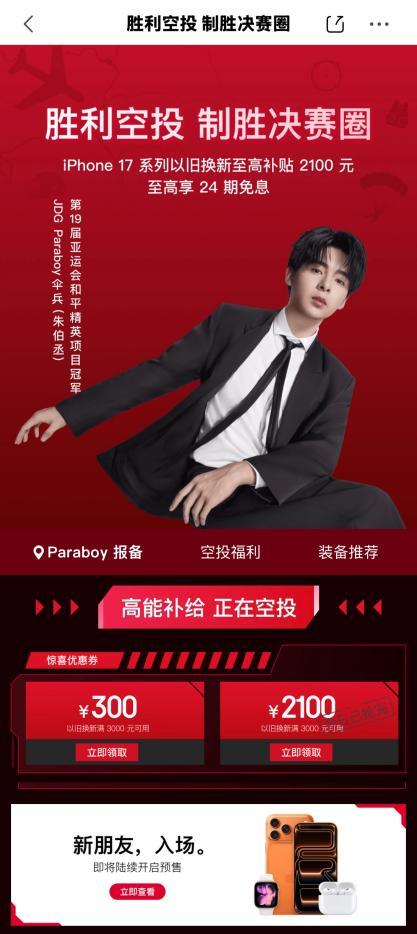 JDG Paraboy伞兵携iPhone 17专属福利空降京东 24小时预约破500万